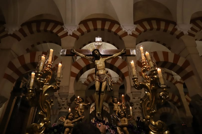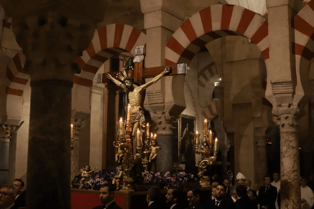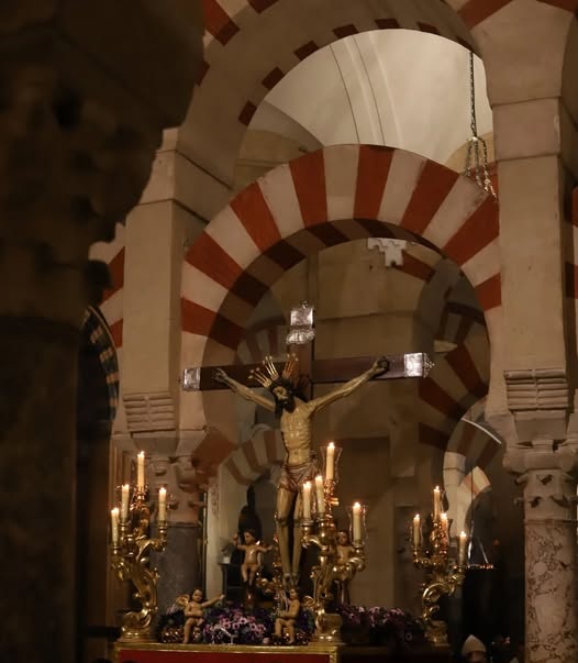 Vía Crucis de las Cofradías de Córdoba del año 2025, presidido por el Cristo de San Álvaro.  Interior de la Mezquita-Catedral.