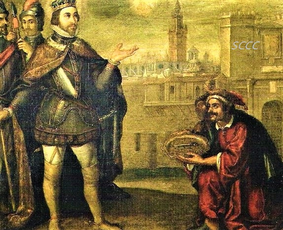 El emir Axafat entrega al rey Fernando III las llaves de la ciudad de Sevilla, Oleo sobre cobre de Francisco Pacheco que se encuentra en...