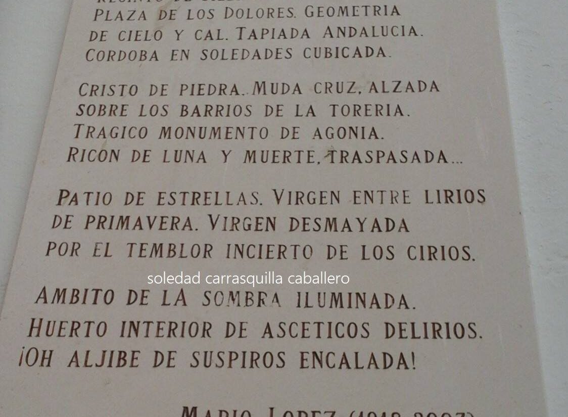 Recinto de silencios. AljamiadaPlaza de los Dolores. Geometríade cielo y cal. Tapiada Andalucía.Córdoba en soledades cubicada. Cristo de Piedra. Muda cruz, alzadasobre los barrios de...