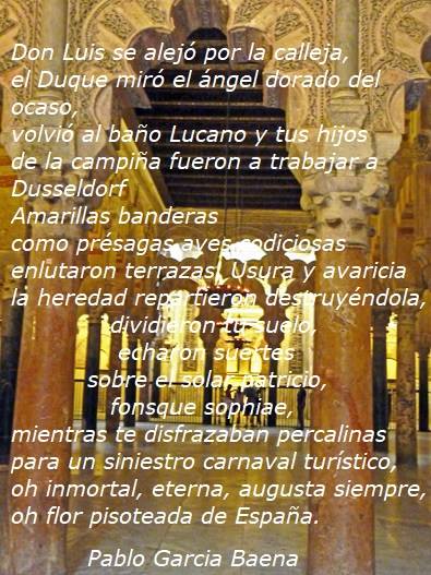 Don Luis se alejó por la calleja,el Duque miró el ángel dorado del ocaso,volvió al baño Lucano y tus hijosde la campiña fueron a trabajar...