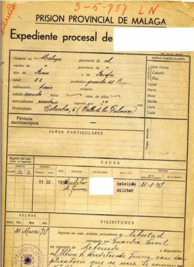 Documento de la prisión provincial de Málaga durante la Guerra Civil Española. En mayo de 1939, poco después del final de la Guerra Civil, Antonio...