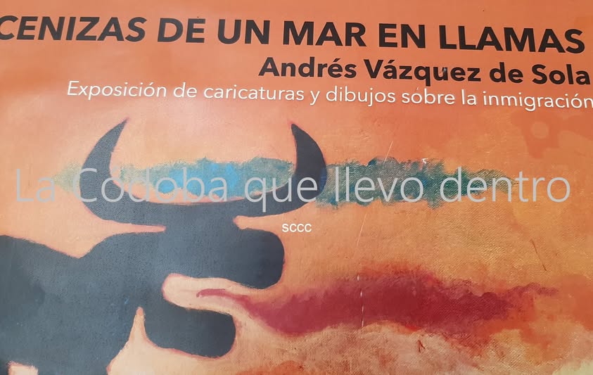 Detalle del cartel de la exposición de Cenizas de un mar en llamas. Andrés Vázquez de Sola nació en San Roque. Periodista, escritor, pintor, dibujante...