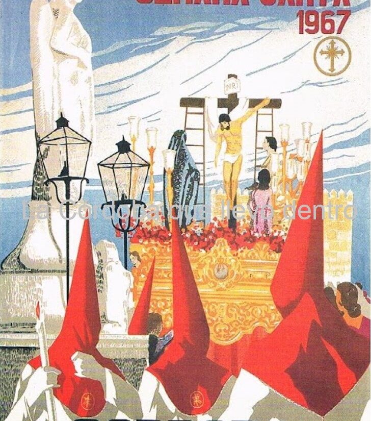 Cartel de la Semana Santa de Córdoba del año 1967, donde el Cristo de Descendimiento y San Rafael se encuentran en el puente, por donde...