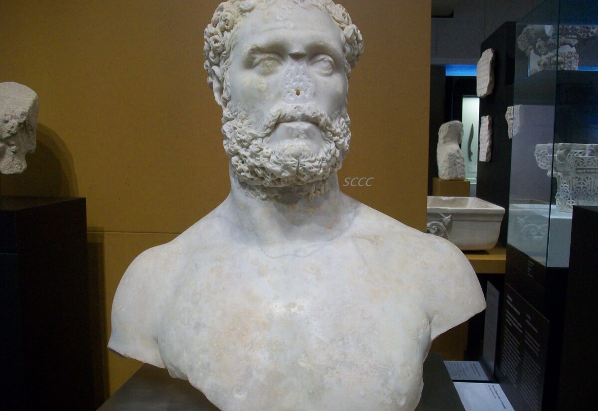 Busto probablemente de Clodius Albinus, que se proclamó emperador en el año 195. Peinado y barba como la que había puesto de moda el emperador...
