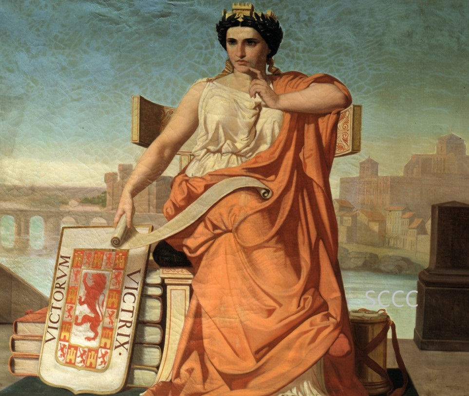 Detalle de la Alegórica de la ciudad de Córdoba del Congreso de los Diputados. Pintura mural del salón de conferencias, realizada por Isidoro Lozano en...