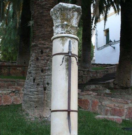 Monumento a la Tizona en los jardines de la calle Mayor de Cabra. Esta espada con la que lucho en Cabra no puede ser la que se conoce con el nombre propio de la Tizona ya que la batalla de cabra se dio en 1079 y Tizona se llamó a una espada que el Cid arrebato en valencia al rey Búcara 1094, después de matarlo, como cuenta el Cantar. Aunque las espadas andalusíes recibían el nombre genérico y popular de tizones porque para endurecer el acero, los herreros lo envolvían con pieles para proceder a su fundición al horno, lo que dotaba de más carbono a la hoja (y por tanto más dureza) y le daba ese color oscuro tan característico. La tizona se trata de una maravilla de la metalurgia andalusí.