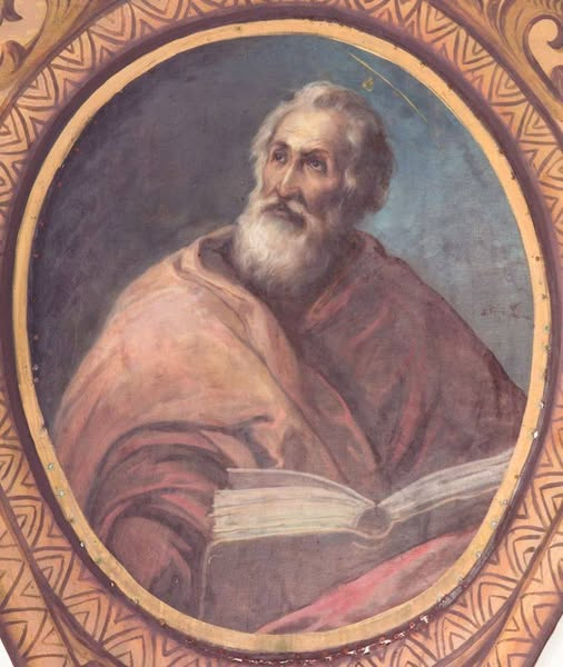 San Marcos evangelista, pintura de Julio Romero de torres en la pechina de la cúpula del Templo Parroquial Nuestra Señora de la Asunción de Porcuna.