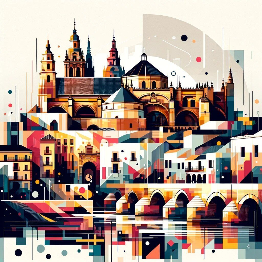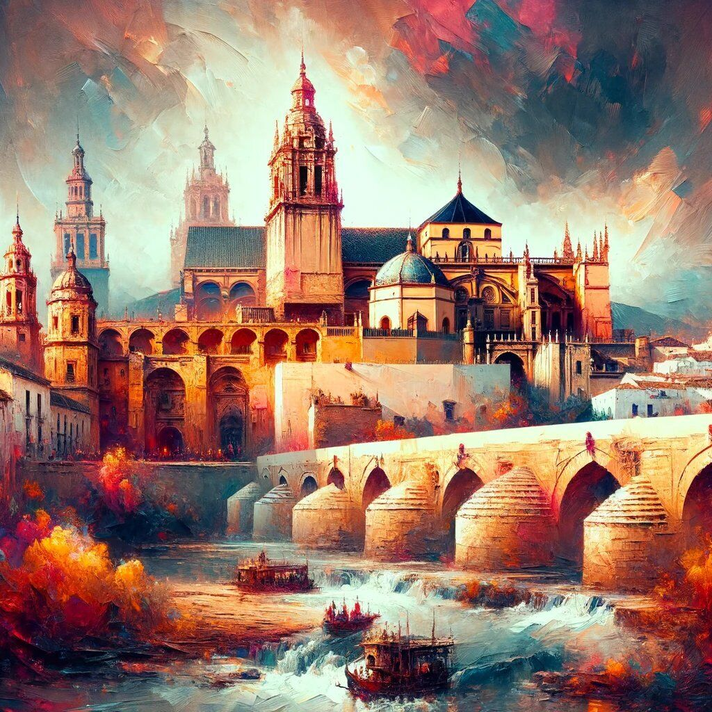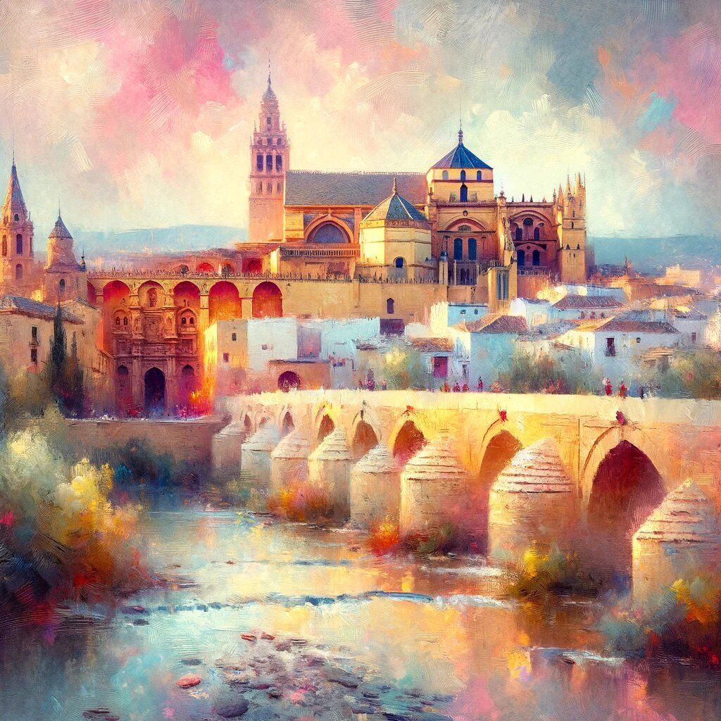No hace mucho tiempo que la inteligencia artificial se encuentra entre nosotros, aunque terminara contándonos el pasado visto con sus propios ojos. Ya en la fase inicial en la que se encuentras, nos trae ecos de unas amalgamas de edificaciones, en el caso que nos ocupa, donde las construcciones de Córdoba parecen sacadas de una película de aventuras fantásticas. Gracias más que nunca a la Mezquita de Córdoba que a través de la insuperable silueta de la Gran Aljama se puede identificar Córdoba. Sccc.