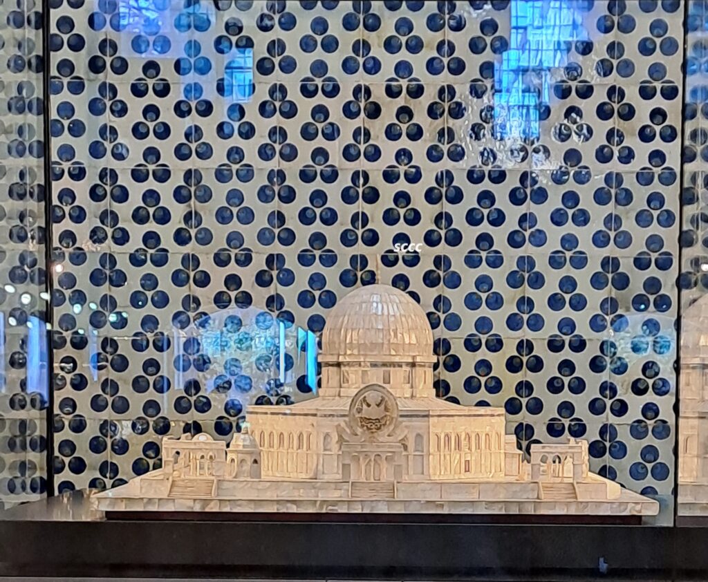 Maqueta de la Mezquita de los Omeyas en Damasco donde hay un monumento conocido como la tumba de Juan. Se dice que su cuerpo fue enterrado allí, mientras que su cabeza fue enterrada en el barrio al-Zabadani de la ciudad. Sala de las reliquias de palacio de Topkapi en Estambul