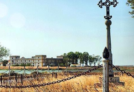 Cementerio de la Carraca donde está enterrado Francisco Miranda y al fondo la pricion de Cuatro Torres, donde murió.