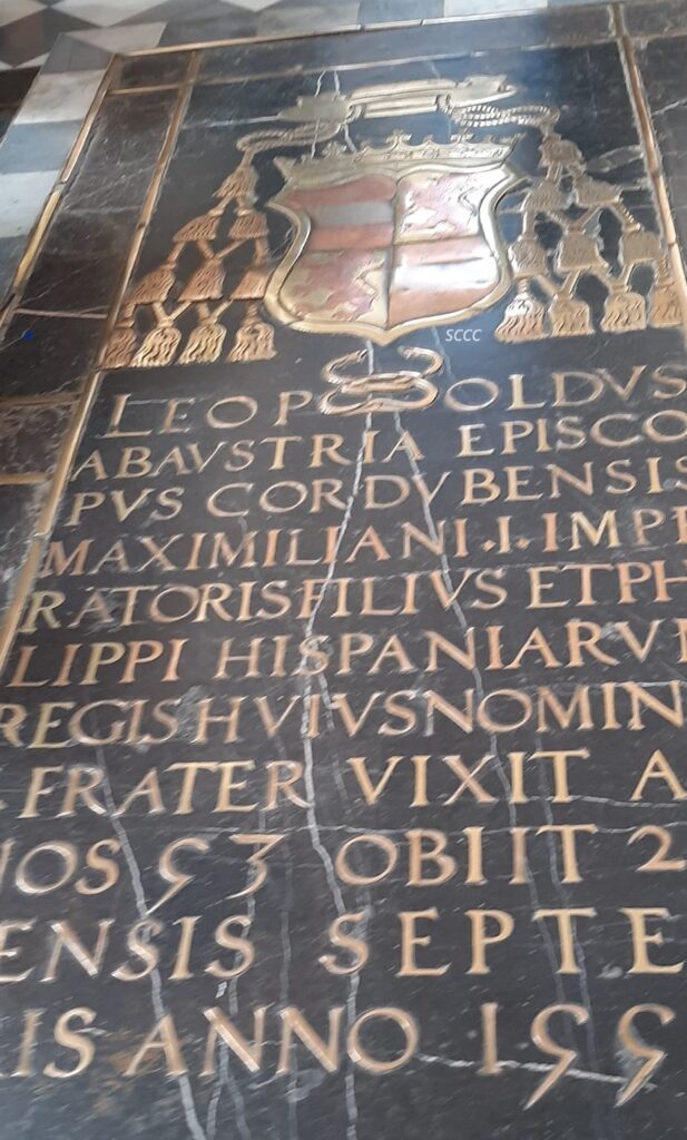 Lapida de la tumba del obispo de Córdoba Leopoldo de Austria en el Crucero de Mezquita-Catedral de Córdoba.