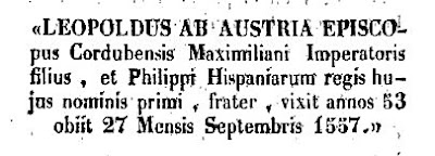 Leopoldo de Habsburgo nació en Austria en 1515 y murió en Córdoba en 1557. Fue hijo basatardo del emperador Maximiliano I de Habsburgo, lo que lo convertía en hermano de padre de Felipe I de Castilla. Su madre, Margareta von Edelsheim, fue amante del emperador.