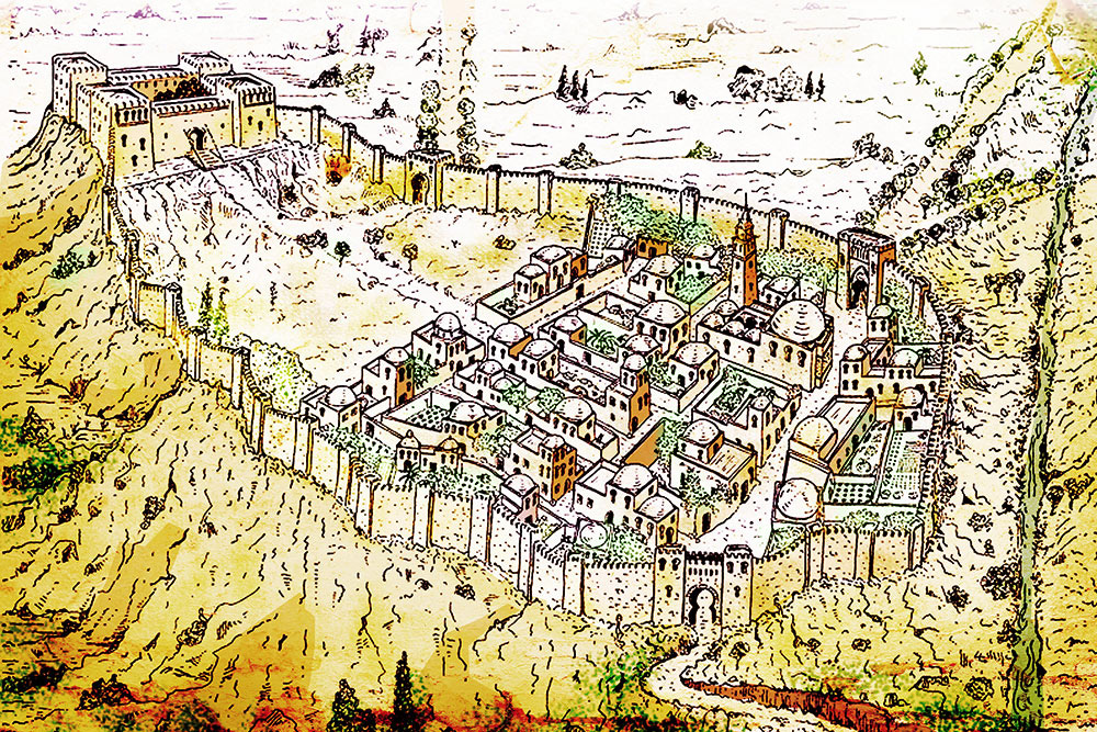 Antigua Fortaleza emiral que se encontraba en el mismo lugar que ocupa hoy en día el Palacio Real, delantera del lugar correspondindiente con la Plaza de la Armería.