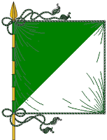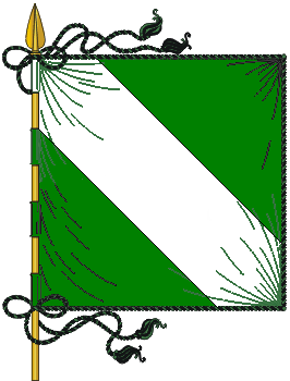 Fotografia de azulejo con las 22 bandera que la casa de Cabra incorporo a su escudo después de la batalla de Lucena, de las cuales 18 eran blanca y verdes.