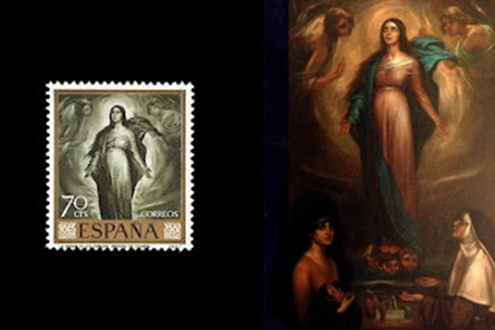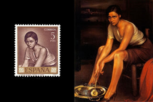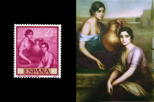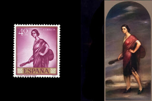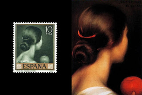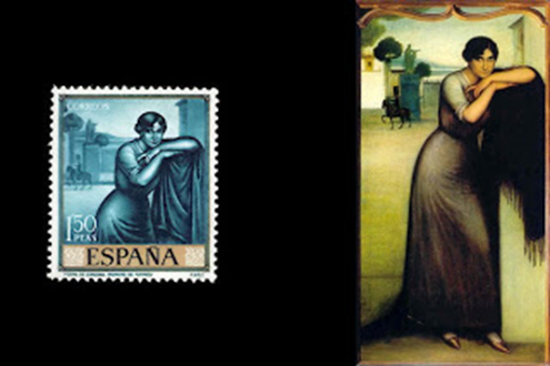 Sello dedicado a Julio Romero de Torres y el cuadro del que se realizó.