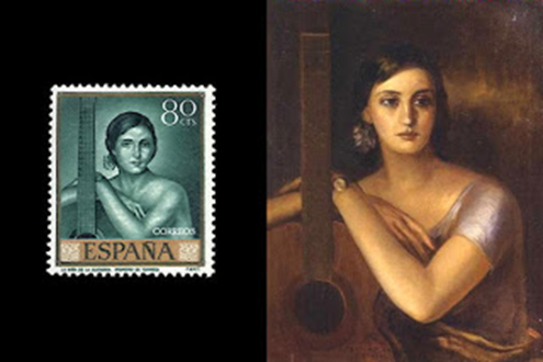 Sello de 80 céntimos. Cuadro La niña de la guitarra.