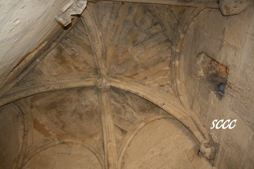 La sala superior se encuentra cubierta por una bóveda de nervios, cuyos arcos descansan sobre capiteles decorados con motivos vegetales. Esta estructura refleja una clara influencia gótico-francesa, al tiempo que se integra con elementos de la tradición mudéjar, característica de la arquitectura castellana del siglo XIV.